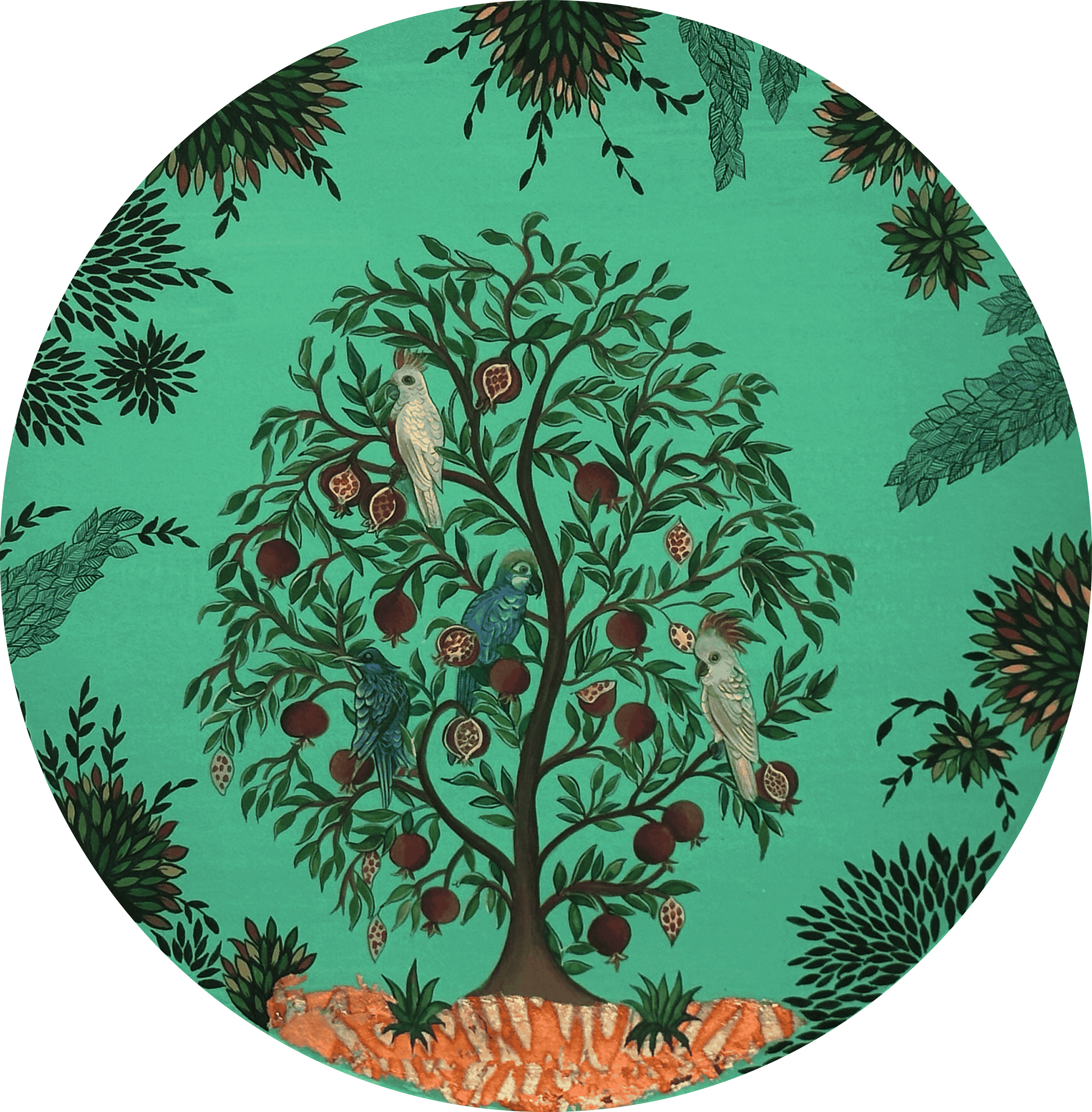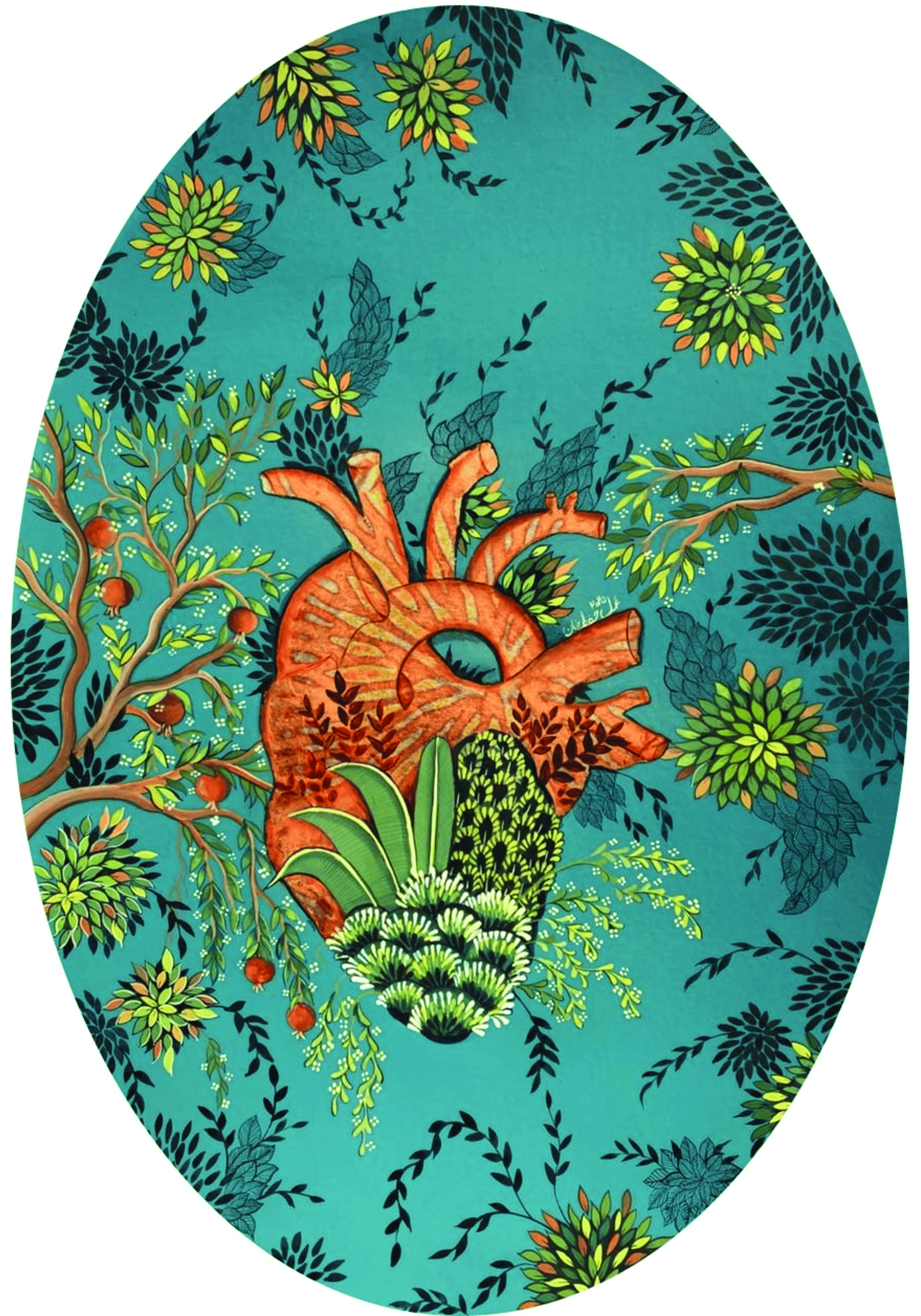 Hifza Khan explores emotions through a uniquely female lens, reflecting on themes of empowerment, displacement and the search for belonging. “I construct imaginative realms where harmony, tenderness, and the fluidity of nature become sites for contemplation and healing. Recurring symbols such as the pomegranate, signify purity, vitality and inherited memory and the bird, evoking longing, freedom, and the idea of home serve as visual anchors within these landscapes. For me, women embody natures creative force, nurturing, resilient, and continuously becoming. My work becomes a dialogue between tradition and personal narrative grounded in miniature painting yet open to contemporary sensibilities.”