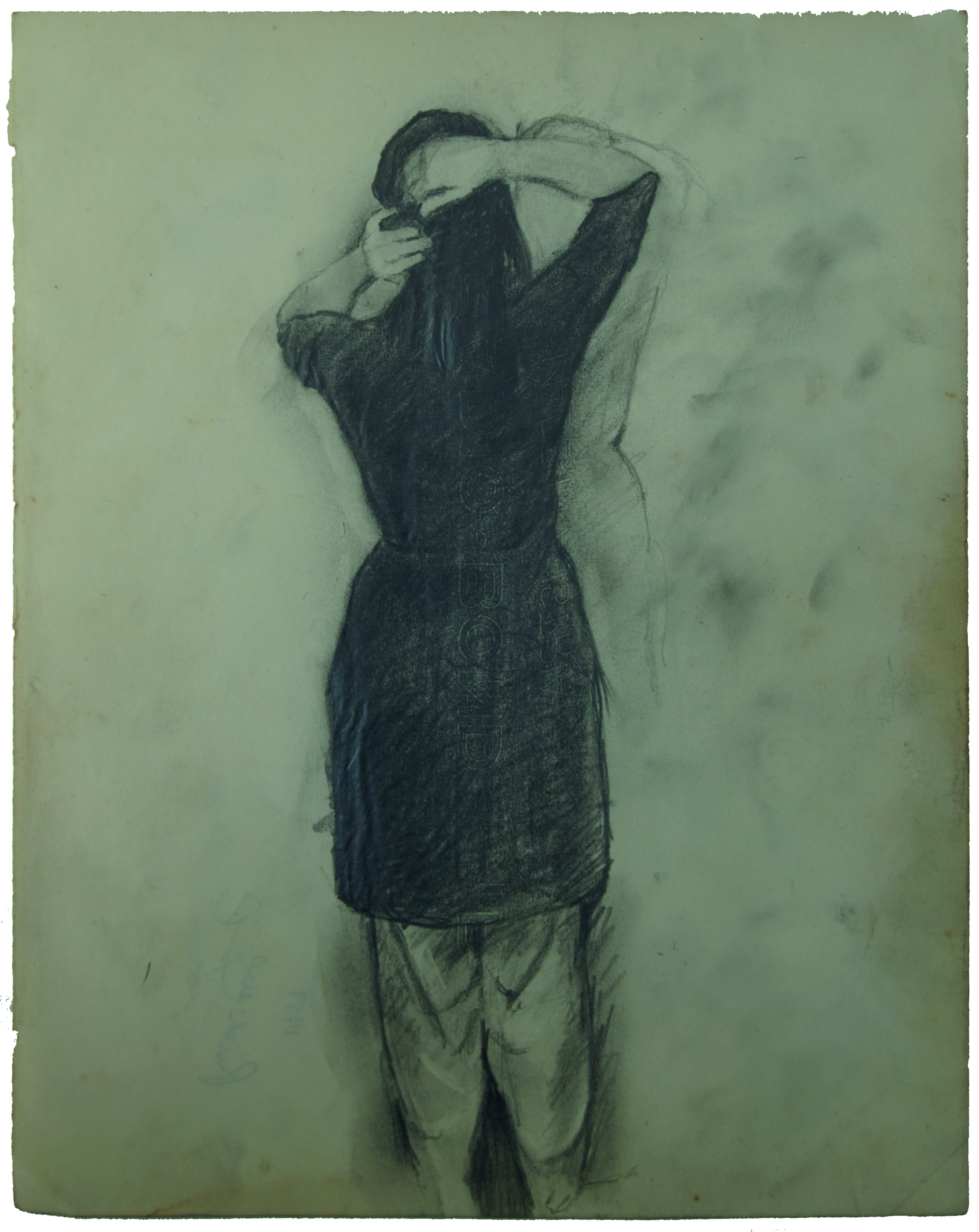 Untitled 13, Charcoal on paper, 9 x 6 inches, 1970