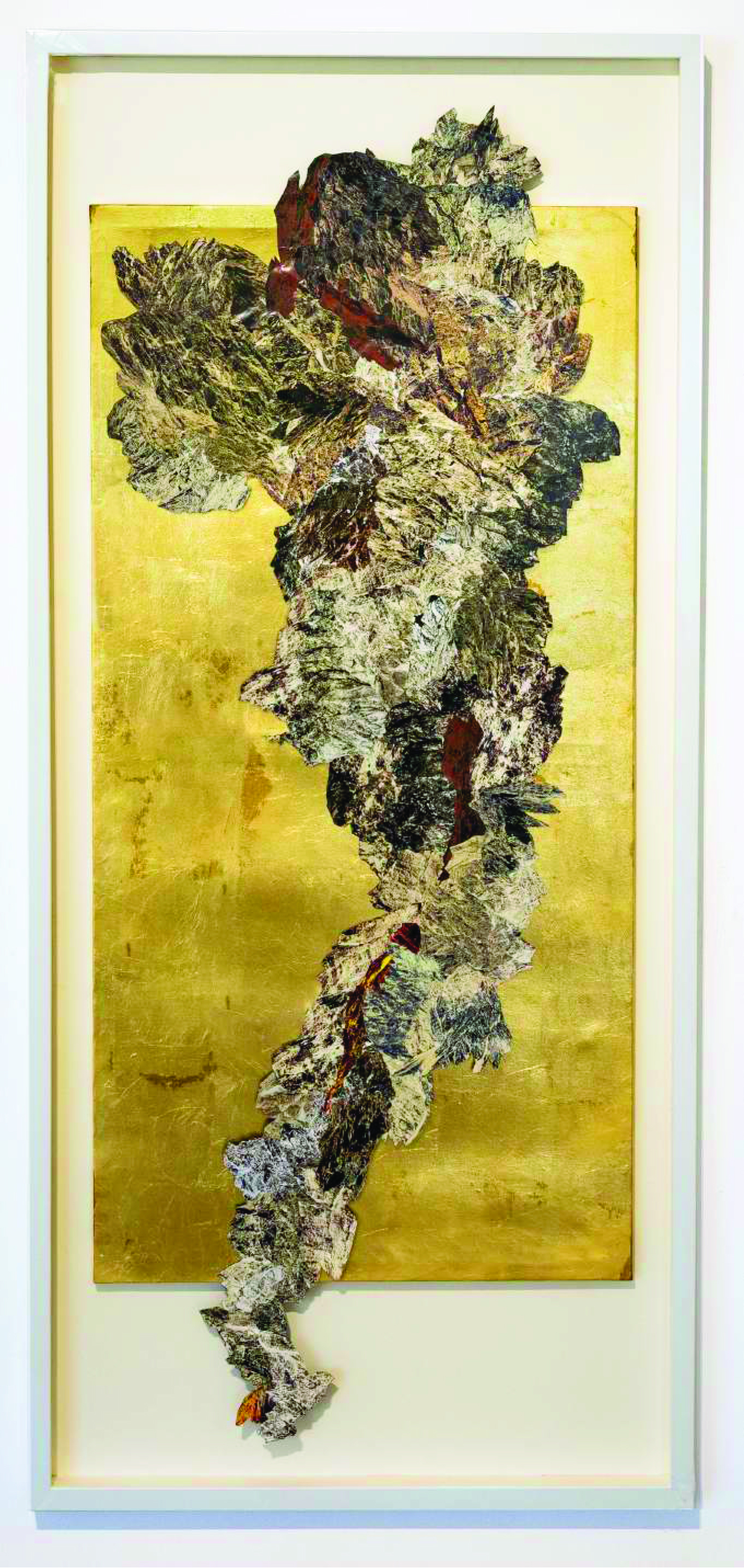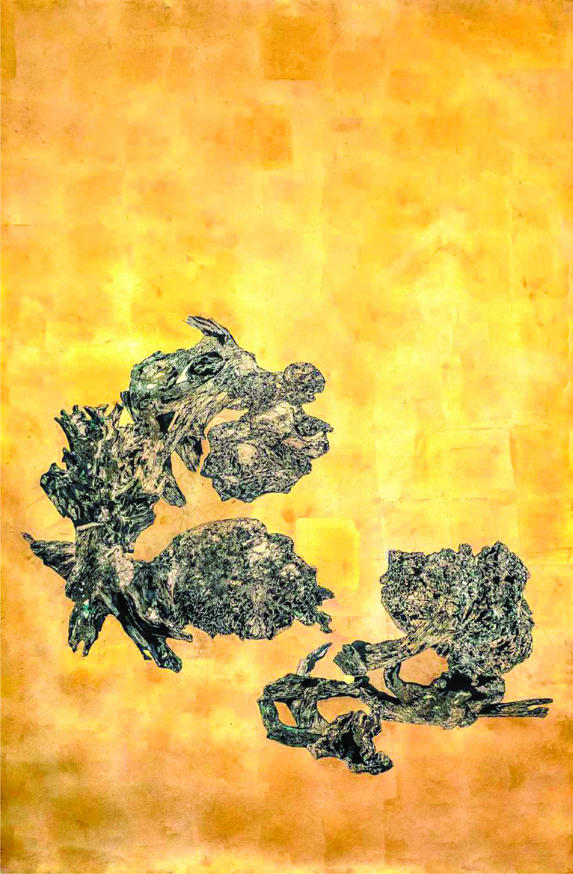 Naazish Ata-Ullah comments on the artist’s influence and journey, “In Sarah Ahmad’s work, vast landscapes are not simply recorded but transformed. Ahmad takes fragments of these environments, selecting, cutting, editing, moving them through stages of transmutation. The spine of this work is her own experience: taking fragments and piecing them together, pieces of trauma and displacement of a life not rooted in any one place. The cutting and piecing together of fragments mirrors this, a fragmented existence transformed into new structures. This is not detachment, but a journey. Rebuilding from wreckage. Ahmad’s research happens through direct experience of the landscape, walking, hiking, and being in nature. She witnesses both renewal and destruction, the healing power of the land alongside scars of extraction and displacement. The landscapes of Gilgit, of Oklahoma and New Mexico in the rural parts of the US, have been inspirational and even nurturing. This is a quietness to these places, something that finds expression in the fragments themselves. One senses the spiritual energy connecting us.”